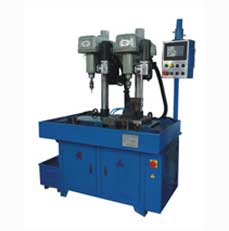 ZSK4625数控双工位滑台式钻攻组合机床采用双机头带滑动工作台结构。机床采用全伺服数控系统控制,操作界面为触摸屏,编程操作直观简单,双机位主轴进给均采用伺服电机驱动,工作台由气液混合介质经专用气缸推动快速移动,零件一次装夹,可以自动完成钻孔、攻牙两道工序作业。实现全自动加工,一人可同时操作多台机床,攻牙机位为数控刚性攻丝支持高精度攻丝。因此该机床具有孔位精度好、加工效率高、劳动强度低等优点,特别适合于钻孔和攻丝复合加工类零件的批量加工及多孔类零件的错位加工,配合多轴器使用,加工效率更高根据需要也可设置为钻-钻及攻一攻组合。