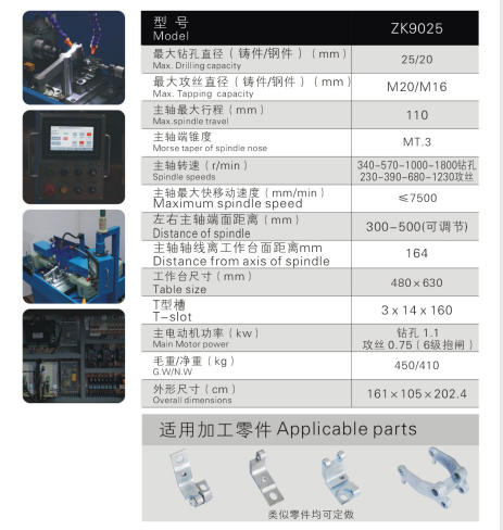 本机床为双主轴箱对向布置结构,采用全伺服数控系统控制,主轴进给由伺服电机驱动。配合气动夹具及复合刀具,工件一次装夹,两端同时加工,自动完成钻通孔、铰孔、倒角、刚性攻牙等多工序同轴加工。也可以对同一个工件两个面做不同轴线的多工序加工。装夹、加工全自动操作,一人可操作多台机床,加工效率高。适用于两端孔位加工同心度要求高的零件如汽车门铰链,十字销轴等。